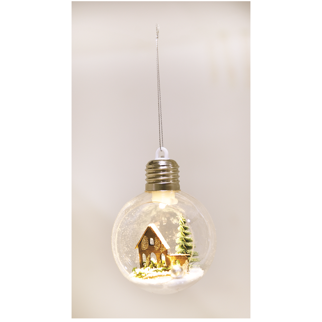 Bola De Natal Acrílica Transparente Aberta Com Led 8cm - Rio De Ouro - Ntb70001