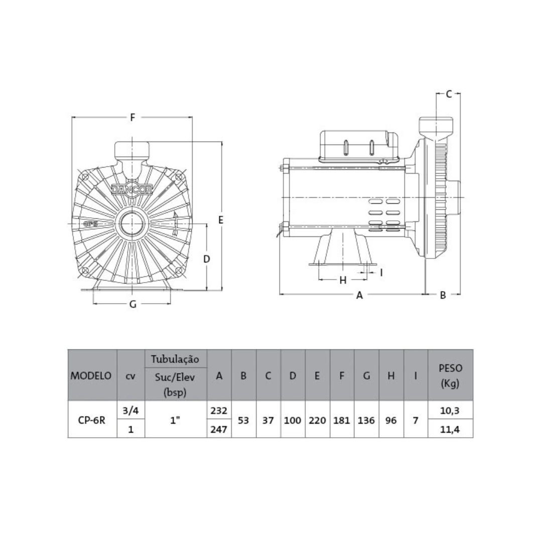 Bomba Centrifuga Cp-6r 1cv Monofásica 110/220v - Dancor - 10408364