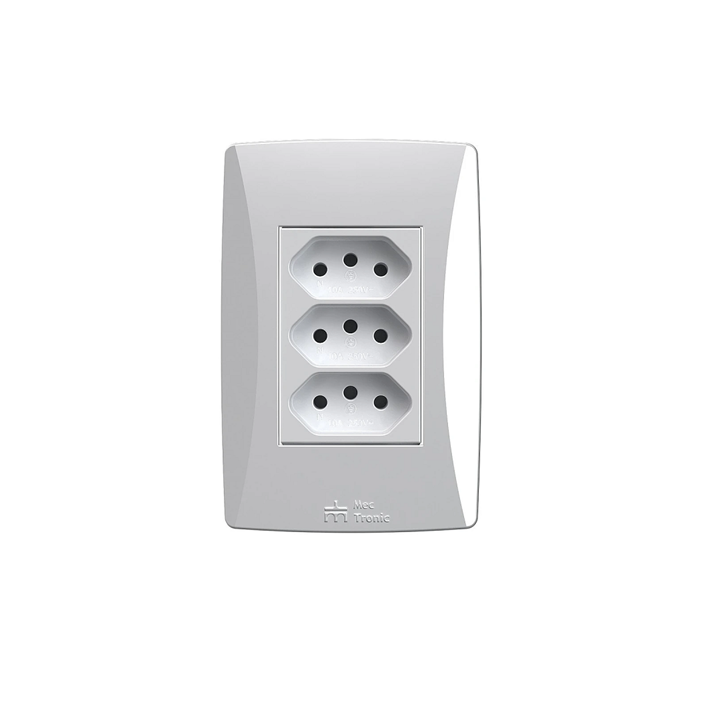 Conjunto 3 Tomadas 2p+T 10a Com Placa Petra Branco - Mec-Tronic - 39879
