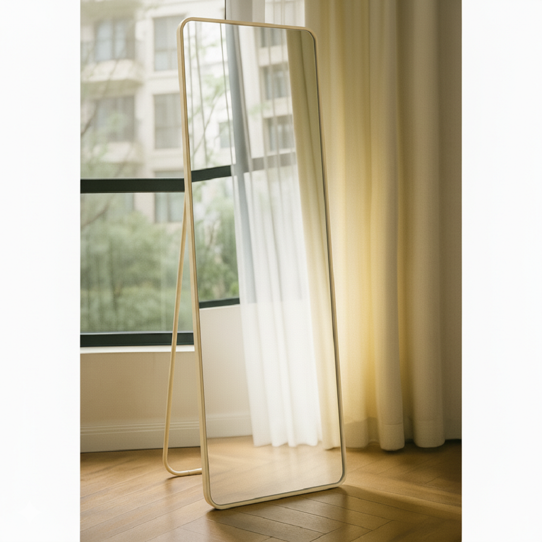 Espelho Retangular Corpo Inteiro Emoldurado 36x146cm Creme - Tokhouse - 22153