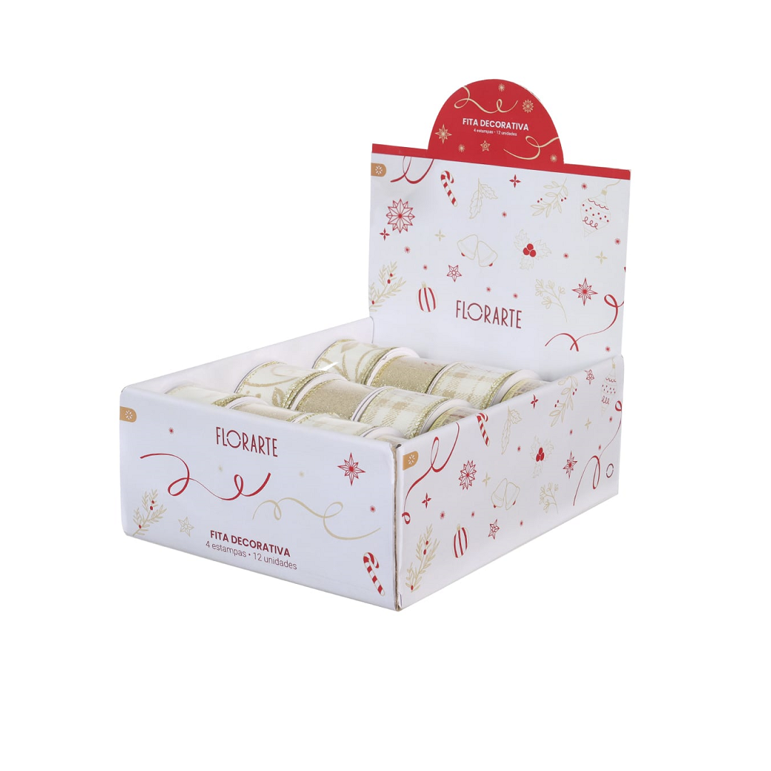 Fita Natalina Para Decoração Com Glitter 3,8cm Com 4,5m Sortidas - D&A - 74108001