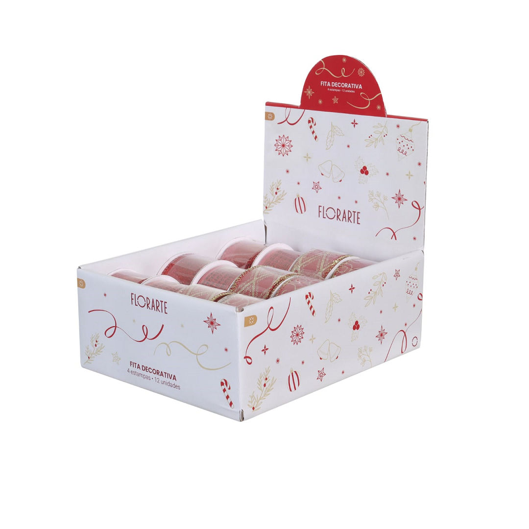 Fita Natalina Para Decoração Com Glitter 3,8cm Com 4,5m Sortidas - D&A - 74125001