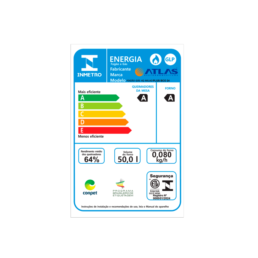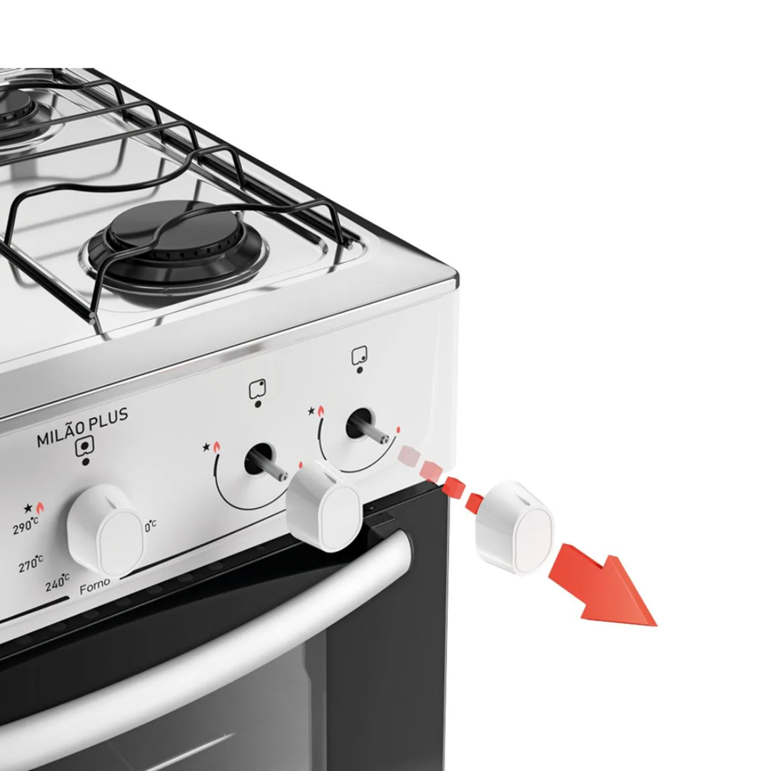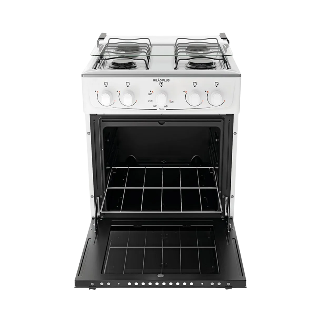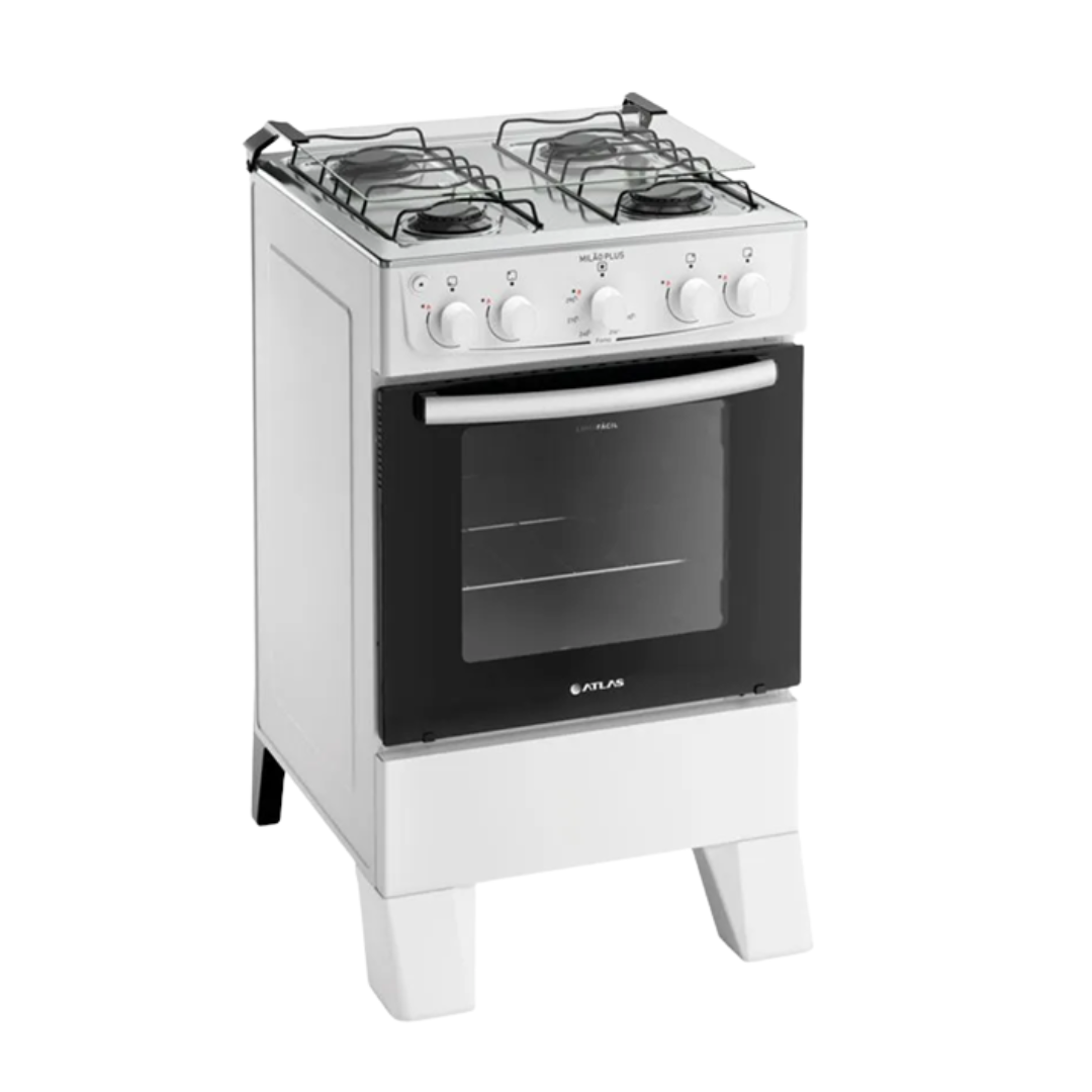 Fogão 4 Bocas Branco Com Mesa Em Inox Milão Plus Bivolt - Atlas - 300001770