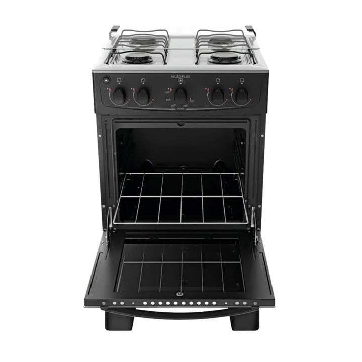Fogão 4 Bocas Preto Com Mesa Em Inox Milão Plus Bivolt - Atlas - 300001771
