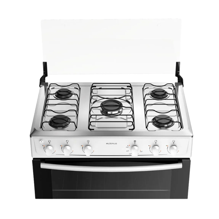 Fogão 5 Bocas Branco Com Mesa De Inox Milão Plus Bivolt - Atlas - 300001772