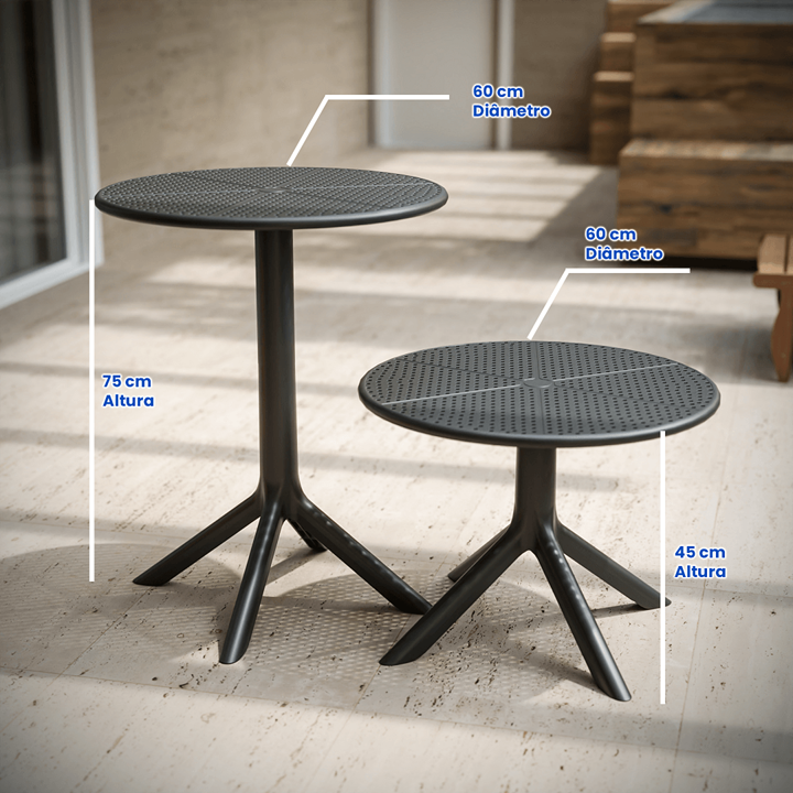 Mesa Redonda De Plástico 2em1 Preta - Forteplas - 32999