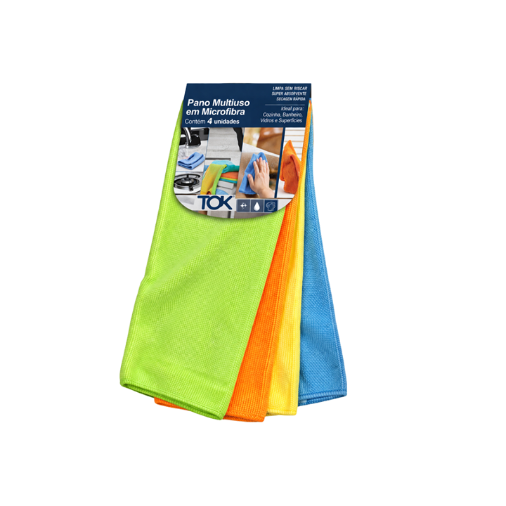 Pano Para Limpeza Microfibra Com 4 Peças Sortidos 25085 - Tok House - 8593