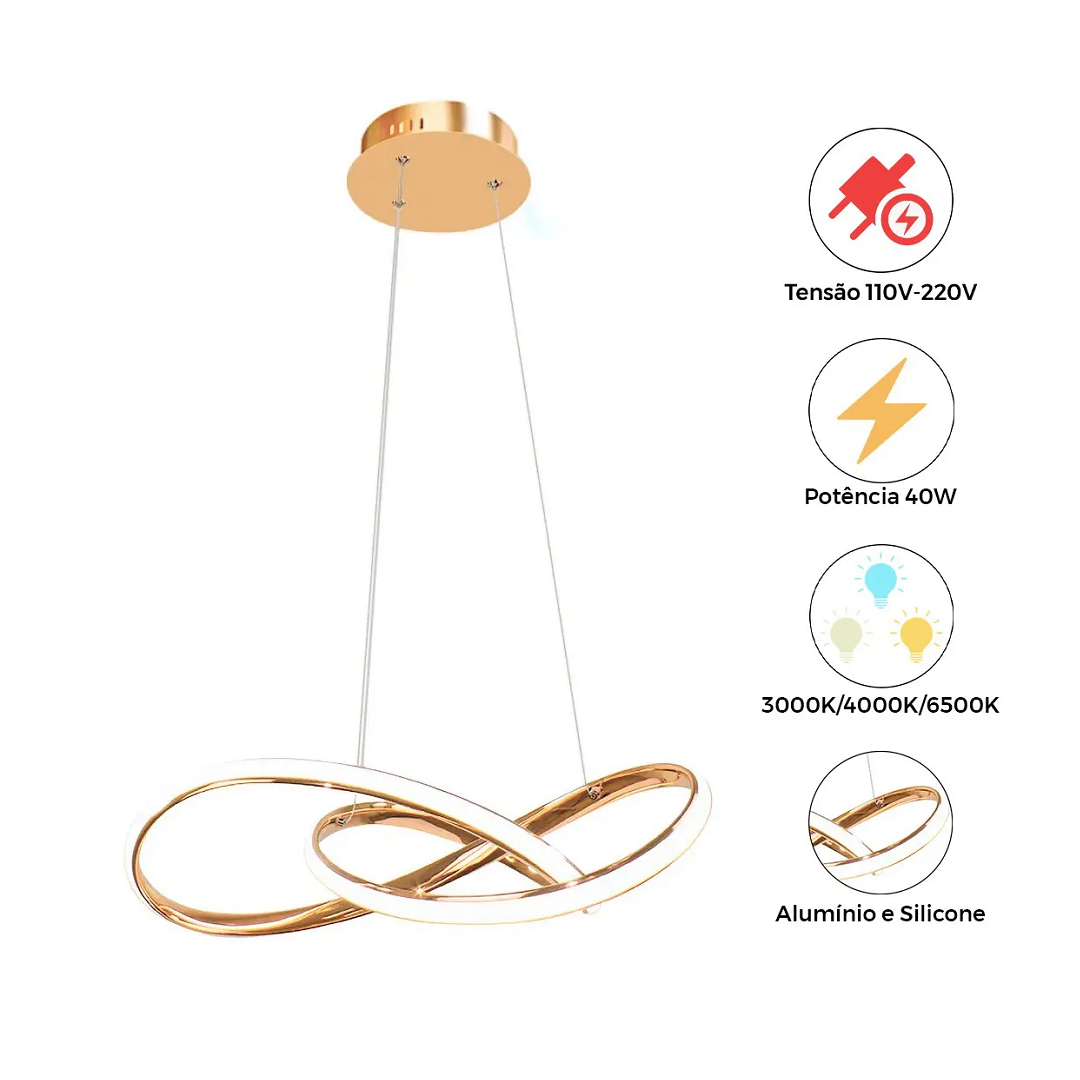 Pendente Led Infinito 35w 3em1 Com Controle Fosco Dourado - Neotron - 330