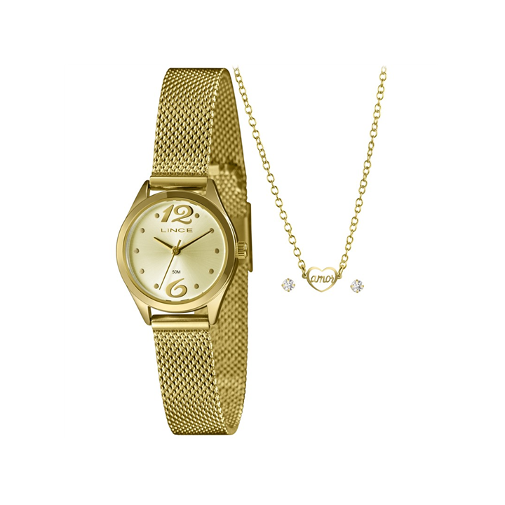 Relógio Feminino Pulseira Em Aço Dourado Original - Lince - Lrgh005l25