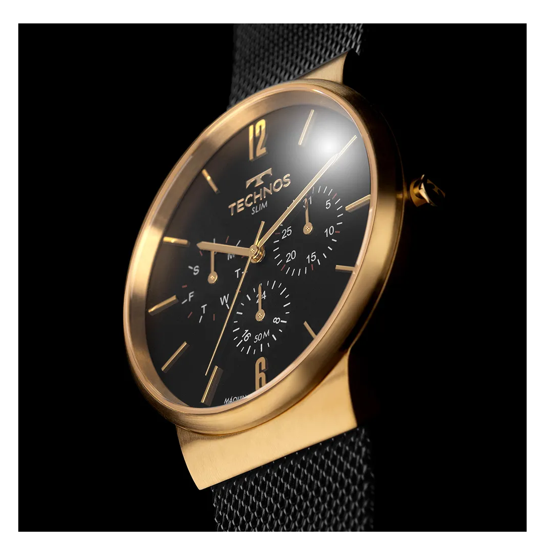 Relógio Masculino Pulseira Em Aço Preto Slim Bicolor - Technos - 6p29aln/1p