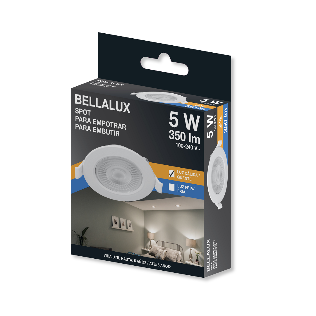 Spot Led De Embutir Redondo 5w 3000k Branco - Bellalux - 7024276