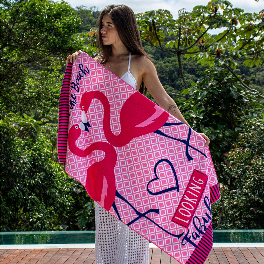 Toalha De Praia Veraneio Estampada Flamingo 9985 - Appel