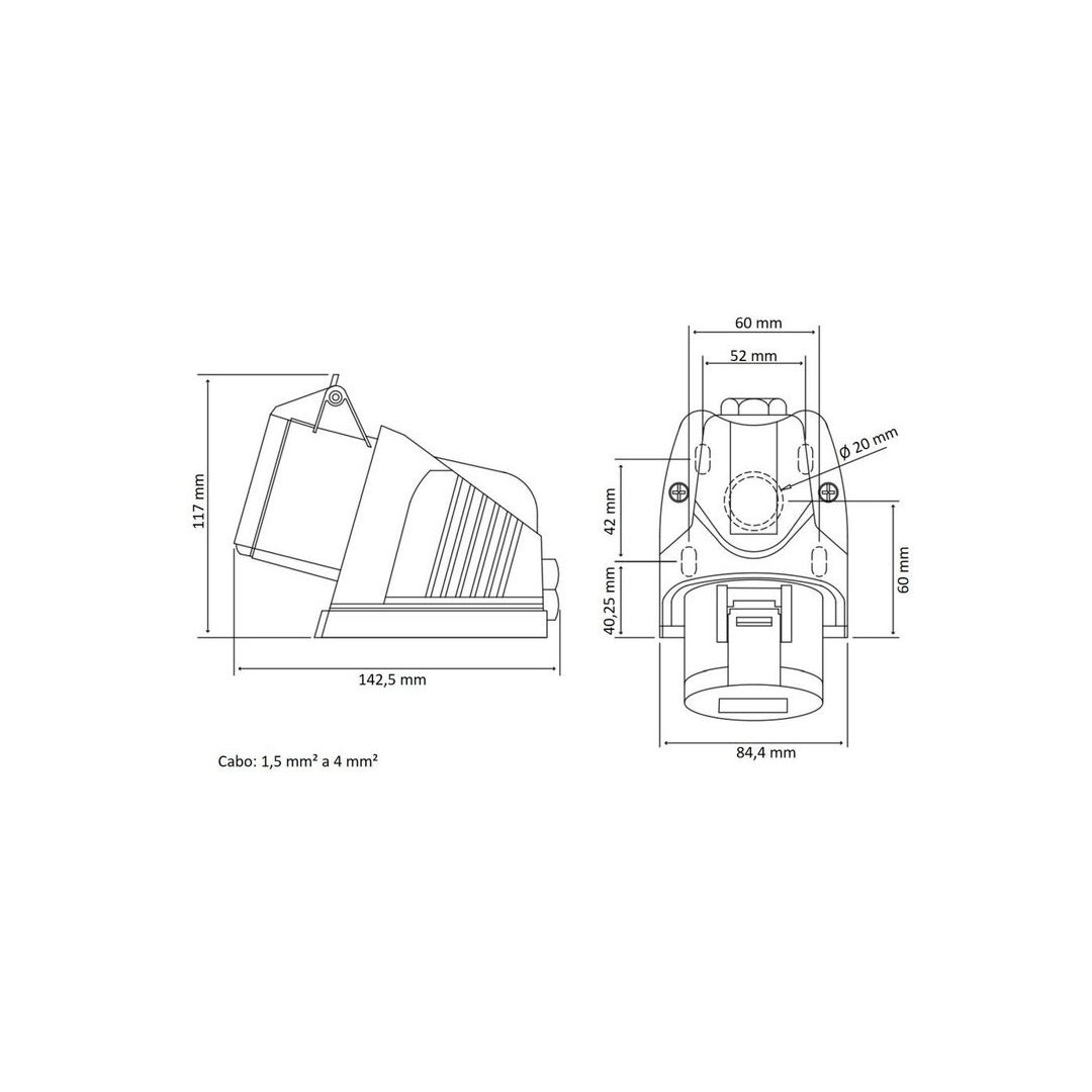 Tomada De Sobrepor Industrial 3p+T 16 A 380/415 Vca 6 H - 56255/333 - Tramontina